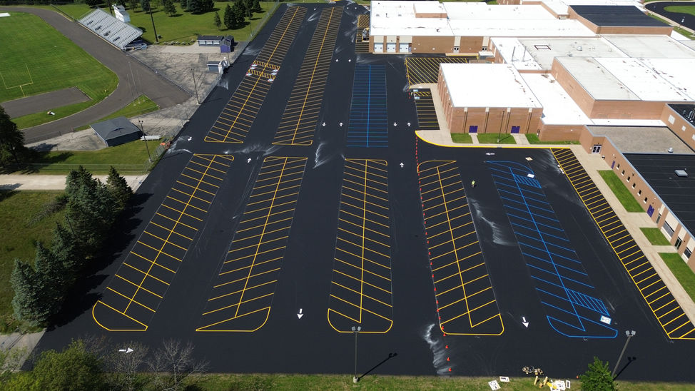 One of the biggest benefits to striping your parking lot is SAFETY! Without the structure that a well laid out parking lot provides, you will find visitors parking in places that block intersections, access to sidewalks, business entrances and exits, fire lanes, and more. Resulting in fire department issues, door dings, fender benders, vehicles needing to be towed or even worse... accidents. These types of accidents may result in naming you and/or your company as the responsible party. Having your parking lot lines, curbs, handicaps, and directional arrows painted, can save you a great deal of time, money, and headache.